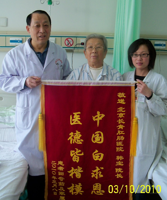 治疗方法:北京马应龙长青肛肠医院专家经过会诊并征得家属及患者本人的同意下,采用了PPH术进行治疗。经过半小时手术时间后,重度脱肛已根除。